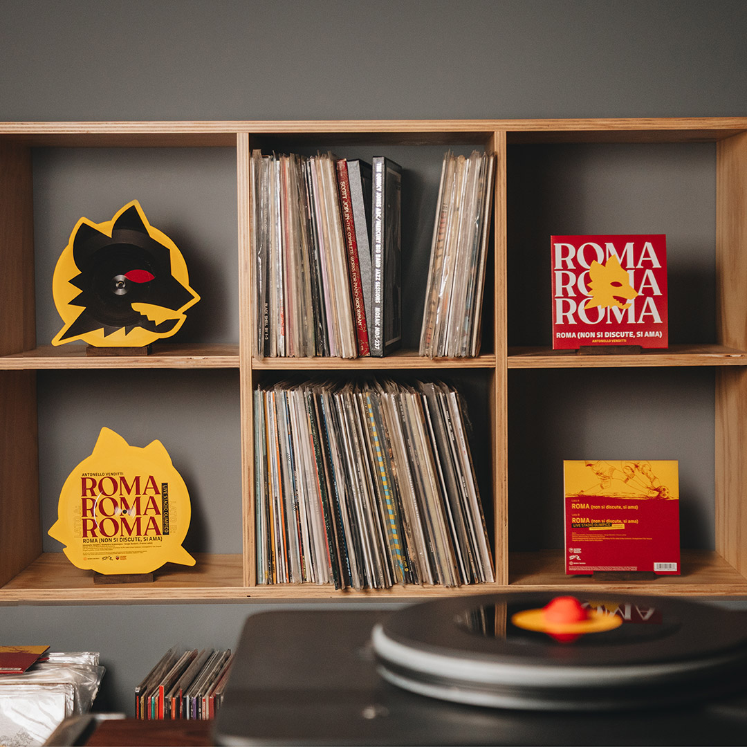 In occasione dell’anniversario, in esclusiva negli AS Roma Store e su store.asroma.com sono disponibili due speciali vinili di “ROMA (NON SI DISCUTE, SI AMA)” contenenti le due versioni dell’iconico brano: la riedizione del classico 45 giri, contenuto in una copertina giallorossa con il logo del Club, e l’edizione limitata shaped (Lupetto di Gratton), stampata in 1975 copie numerate, in omaggio all’anno di uscita…