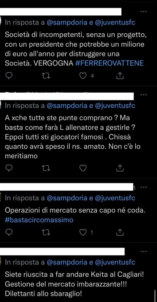 Non mancano ovviamente commenti sul merito delle scelte adottate dalla dirigenza della Sampdoria: