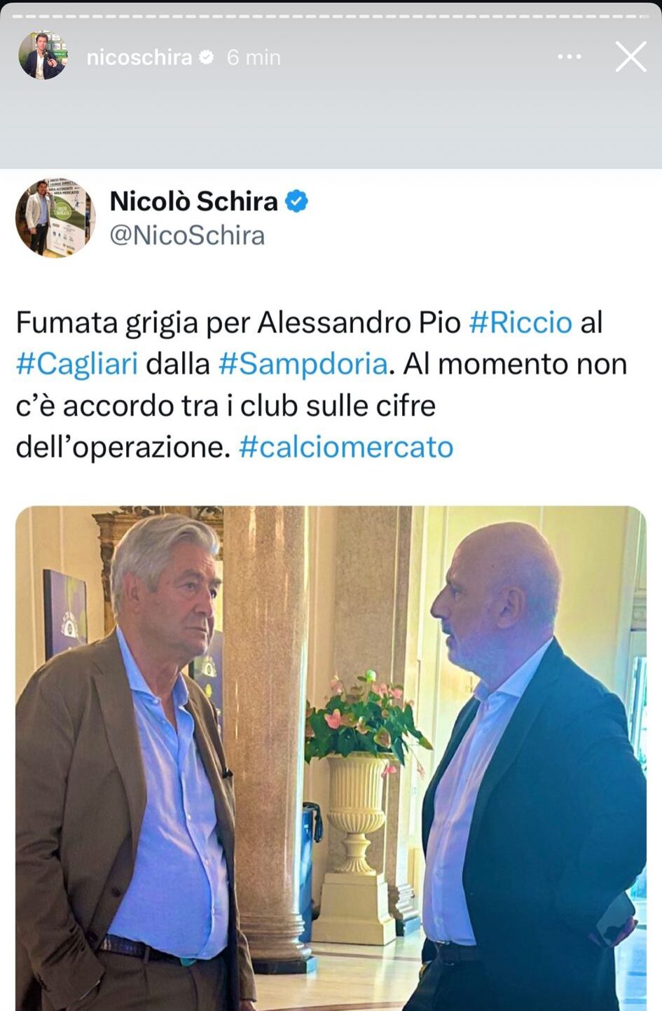 Il calciomercato della Sampdoria è in fermento, secondo Nicolò Schira, l’affare con il Cagliari per Alessandro Pio Riccio non è ancora chiuso