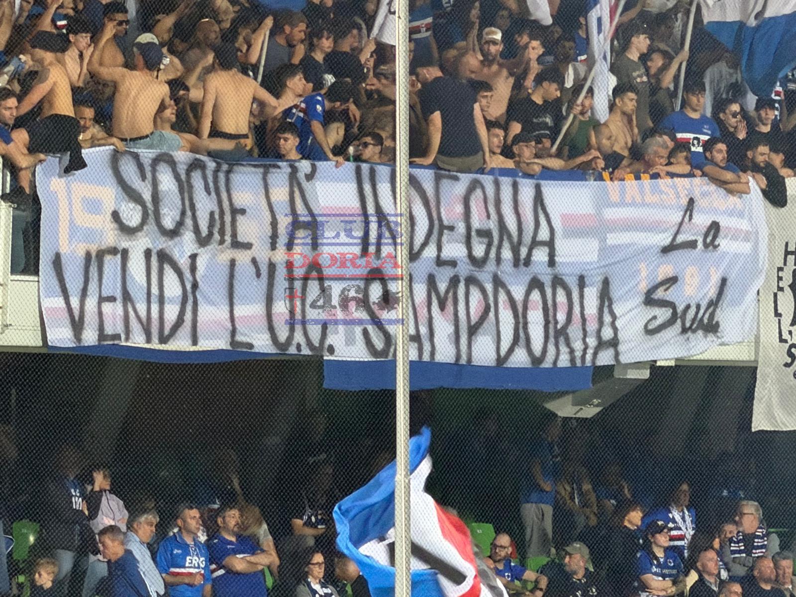 Che resta comunque oggetto di contestazione. Continua a essere definita “indegna” e viene invitata a vendere la Sampdoria. Lo ha ribadito ancora La Sud in trasferta a Cesena, appendendo nel settore ospiti il consueto striscione che ormai da tutta la stagione campeggia nella Gradinata al Luigi Ferraris nelle partite casalinghe.