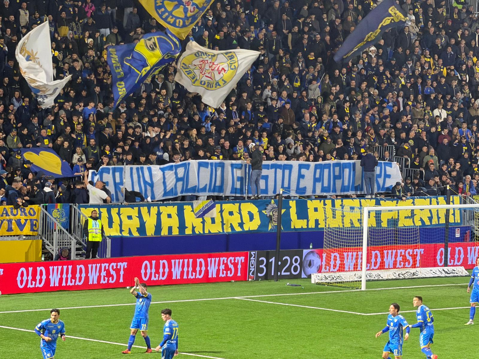 Appena prima della partita, in un settore ospiti non del tutto pieno nonostante i biglietti esauriti, è apparso uno striscione che recitava “Osservatorio la spunti sempre…”, come ad ammettere la sconfitta nei confronti delle Autorità di Pubblica Sicurezza.