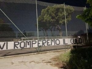 Il clima attorno al Bari è diventato incandescente. Nella tarda serata di ieri, il perimetro dello stadio San Nicola e dell’antistadio è stato tappezzato di striscioni dai toni durissimi, firmati dai gruppi organizzati della tifoseria barese. Le scritte apparse nella notte non lasciano spazio a interpretazioni e colpiscono la squadra su più livelli. Sugli striscioni si leggono frasi pesanti come “Senza palle e senza dignità”, “Mercenari” e un esplicito “Vi romperemo il c**o.