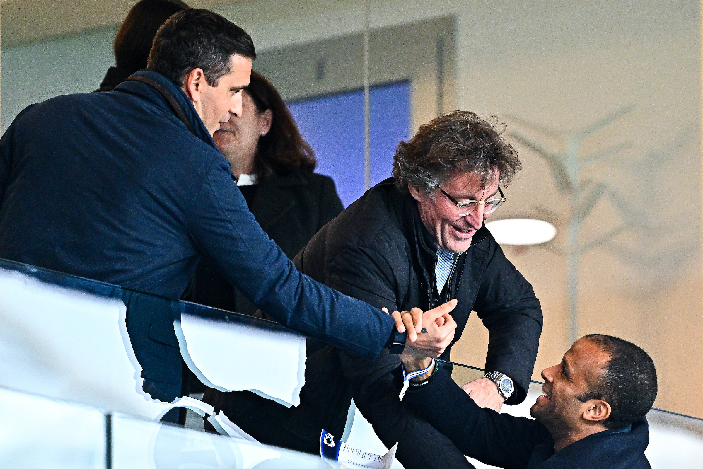 Sampdoria, Maheta Molango è tornato al Luigi Ferraris: sorrisi e strette di mano con Fiorella e Mancini