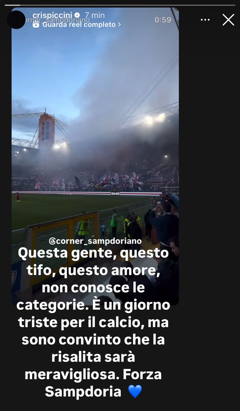 Altri, invece, hanno dedicato nelle ore successive un pensiero con una story su Instagram. Da Lucas Torreira a Pajtim Kasami, passando per Facundo Gonzalez e Luis Muriel, ecco gli ex blucerchiati innamorati ancora dell’eterna ragazza del 1946, forse oggi ancora di più, che restano accanto alla Sampdoria nel momento di maggiore sofferenza di sempre.