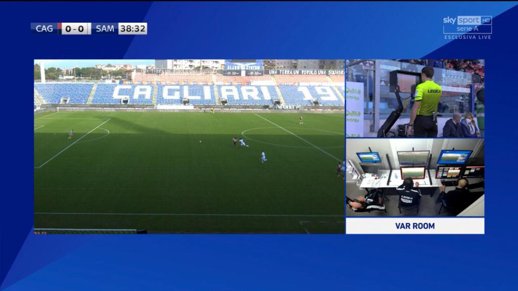Più grave l’errore in apertura di ripresa con la valutazione del tutto penalizzane nel contatto ostruzionistico che avviene nell’area di rigore blucerchiata fra Tonelli e Joao Pedro, giudicato irregolare dall’arbitro con l’assegnazione del penalty in favore del Cagliari. Un rigore inventato da Ayroldi e dal Var…