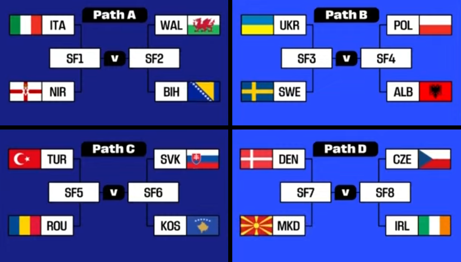 Il primo avversario dell’Italia di Gattuso per tornare al Mondiale sarà l’Irlanda del Nord, per poi qualora si passasse il turno sfidare la vincente tra Galles e Bosnia ed Erzegovina (del difensore della Sampdoria Dennis Hadzikadunic). Nella semifinale del 26 marzo, l’Italia affronterà in casa (Bergamo favorita) l’Irlanda del Nord. Nell’eventuale finale invece contro il Galles o la Bosnia ed Erzegovina i ragazzi di Gennaro Gattuso giocheranno in trasferta: