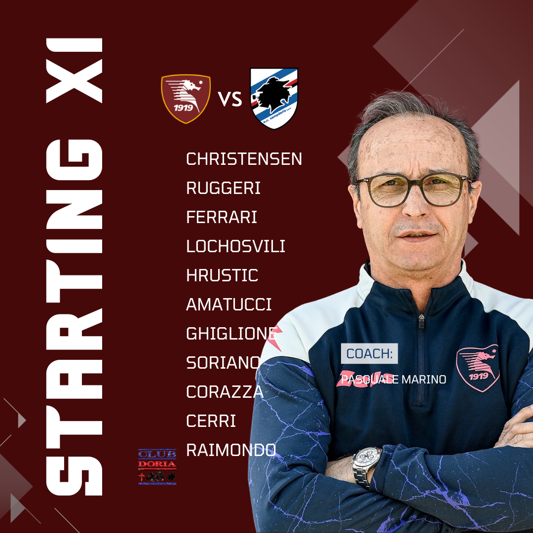 Salernitana (3-4-1-2), Christensen, Ruggeri, Ferrari, Lochosvili, Ghiglione, Hrustic, Amatucci, Corazza, Soriano, Cerri, Raimondo. Allenatore: Paquale Marino