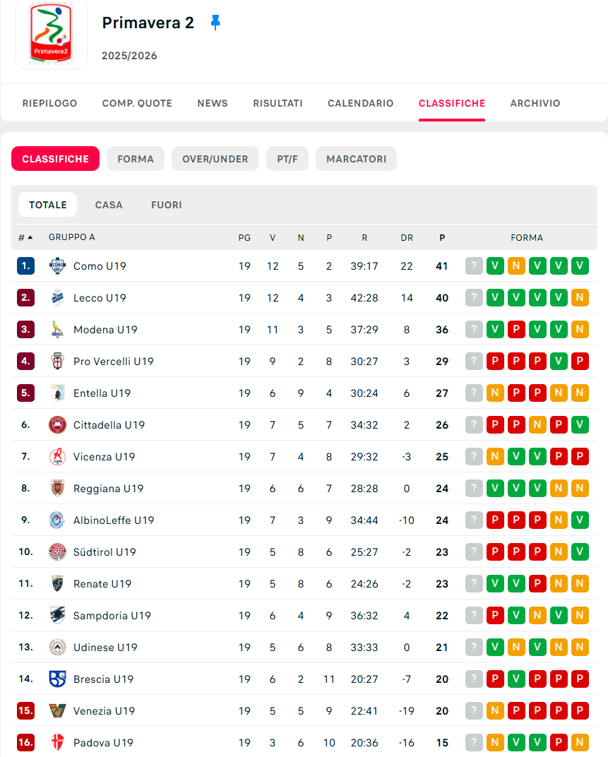 La Sampdoria Primavera di Ciccio Pedone non riesce a dare continuità al momento positivo e cade contro il Renate. I giovani blucerchiati escono sconfitti per 2-0, un risultato che permette agli avversari di operare il sorpasso in classifica. Si interrompe così a quattro la striscia di risultati utili consecutivi della Sampdoria Primavera, che nelle ultime settimane aveva raccolto due vittorie e due pareggi, mostrando segnali di crescita importanti. Uno stop che rallenta la corsa dei ragazzi di Pedone, chiamati ora a reagire immediatamente per non perdere terreno in un campionato sempre più equilibrato.