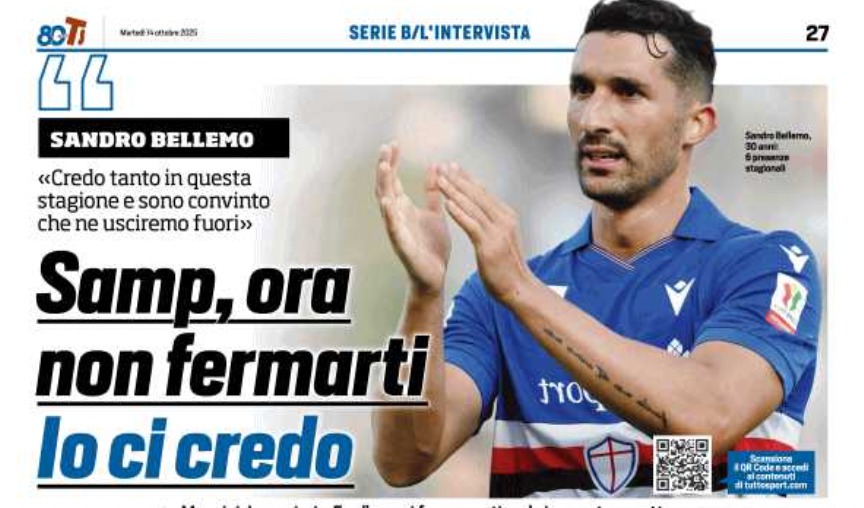 Alessandro Bellemo l’anno scorso ha deluso – come tutta la Sampdoria – ma non si è abbattuto e nelle ultime due partite contro Catanzaro e Pescara è stato tra i migliori in campo. Si sente in forma e sta trovando nel centrocampo a due insieme a Oliver Abildgaard, la sua condizione migliore da quando è arrivato a Genova.