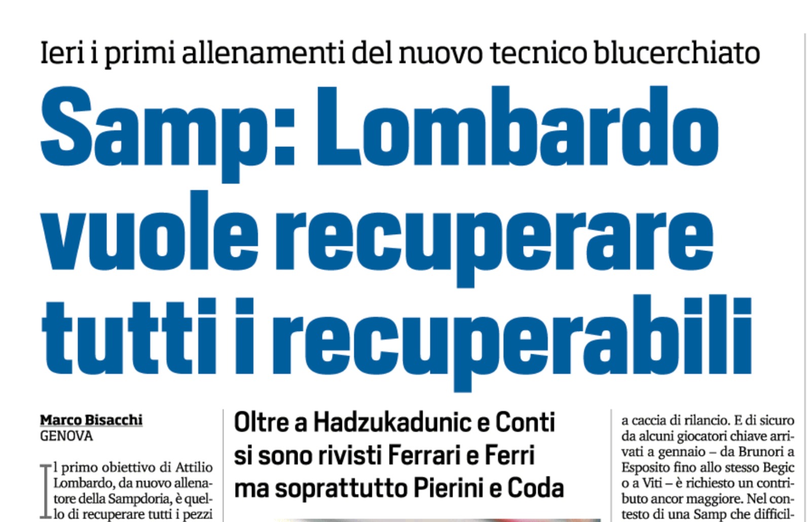 Ferri a fine anno saluterà ed era vicino all’addio già a gennaio. E’ rimasto, non venendo, però, mai convocato. Ha svolto la parte in gruppo e potrebbe, da qui a fine stagione, essere quantomeno reintegrato nel gruppo. Tutti sono importanti, tutti devono sentirsi parte della Sampdoria per arrivare alla salvezza.