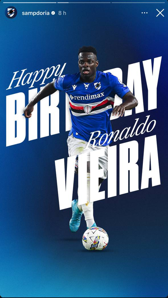 Giornata speciale per un giocatore della Sampdoria. Si tratta di Ronaldo Vieira che nella giornata odierna, 19 luglio compie 27 anni, sui social la Sampdoria lo ha celebrato con una storia sul suo profilo di instagram, a cui si sono aggiunti anche compagni ed ex compagni di squadra, come Fabio Depaoli o Jeison Murillo. Anche noi di ClubDoria46, facciamo i più sentiti auguri di buon compleanno al centrocampista inglese. Intanto il centrocampista ha iniziato la sua stagione oggi con la maglia blucerchiata, la sesta complessiva ma ancora non c’è certezza sul suo futuro.