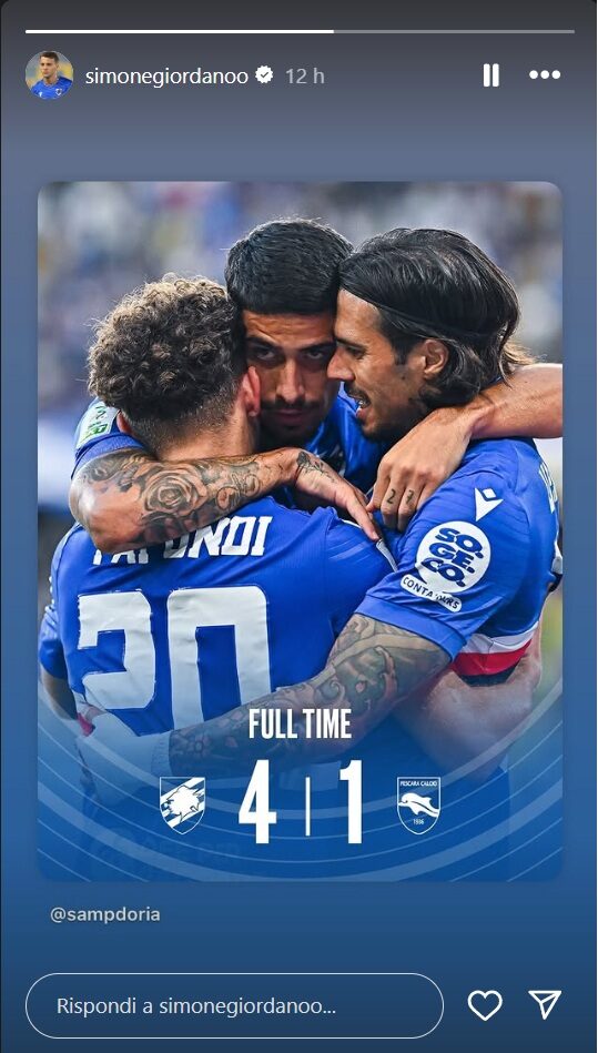 Finalmente Simone Giordano! Contro il Pescara, Massimo Donati lo ha mandato in campo a inizio secondo tempo al posto di Stipe Vulikic, in un momento molto difficile. La Sampdoria era sotto, vedeva lo spettro della quinta sconfitta in sette partite di campionato, ma il classe 2001 non ha tremato. Anzi, nel suo nuovo ruolo ha offerto una prova solida, una prova molto ben augurante.