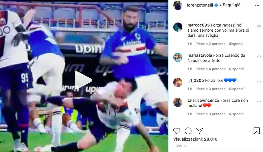 La Sampdoria perde Lorenzo Tonelli. Niente Lecce, niente Spal e chissà quante altre gare ancora. Il rischio è che per il centrale blucerchiato la stagione possa essere finita qui. Solo un’impressione perchè dal proprio profilo Instagram Lollo manda un messaggio incoraggiante.