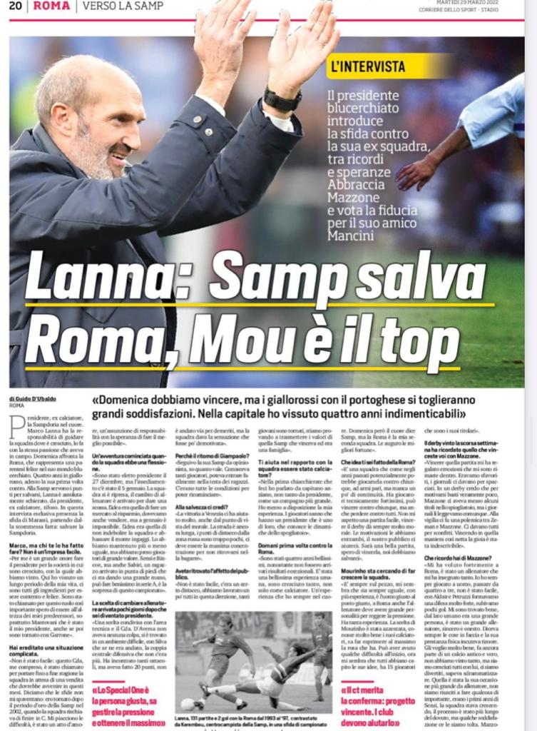 LEGGI ANCHE Verso Sampdoria-Roma, Lanna sa come vincere contro Mourinho