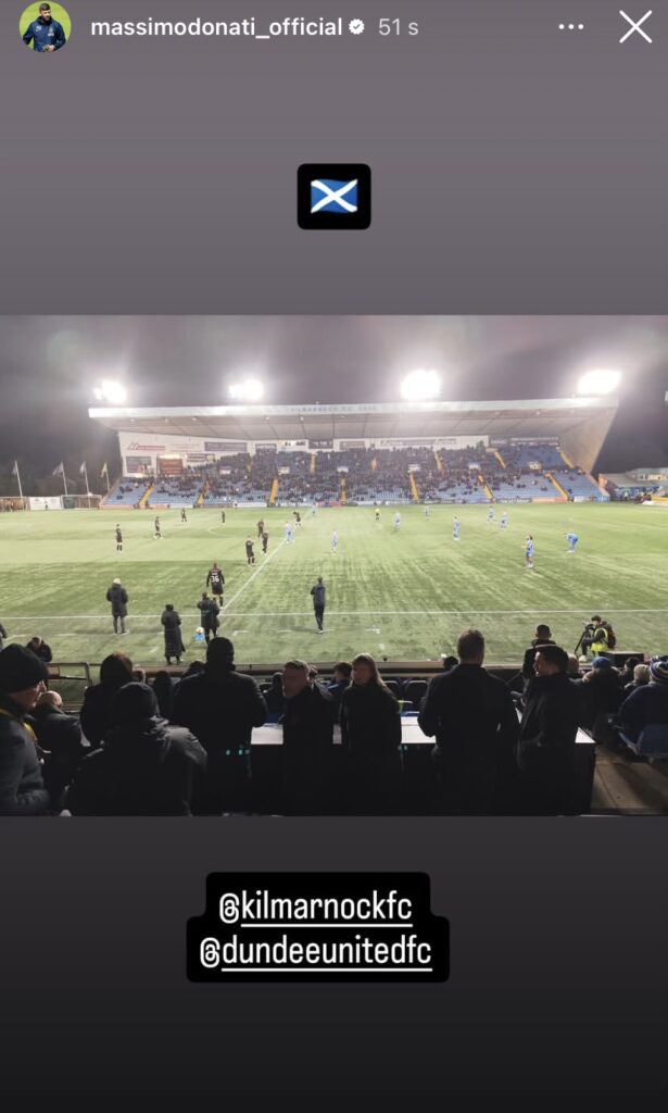 Così Donati non sta con le mani in mano e viaggia di stadio in stadio per tenersi sul pezzo, osservando tattiche e giocatori. Non solo in Italia. Per esempio, in questo weekend era in Scozia, campionato che conosce bene perché lì ha giocato con tre squadre diverse (Celtic, Hamilton Academical e St. Mirren). Sabato 29 novembre è stato ad assistere alla sfida tra Kilmarnock e Dundee United. Proprio nelle ore in cui è arrivata la chiamata dell’Hellas Verona.