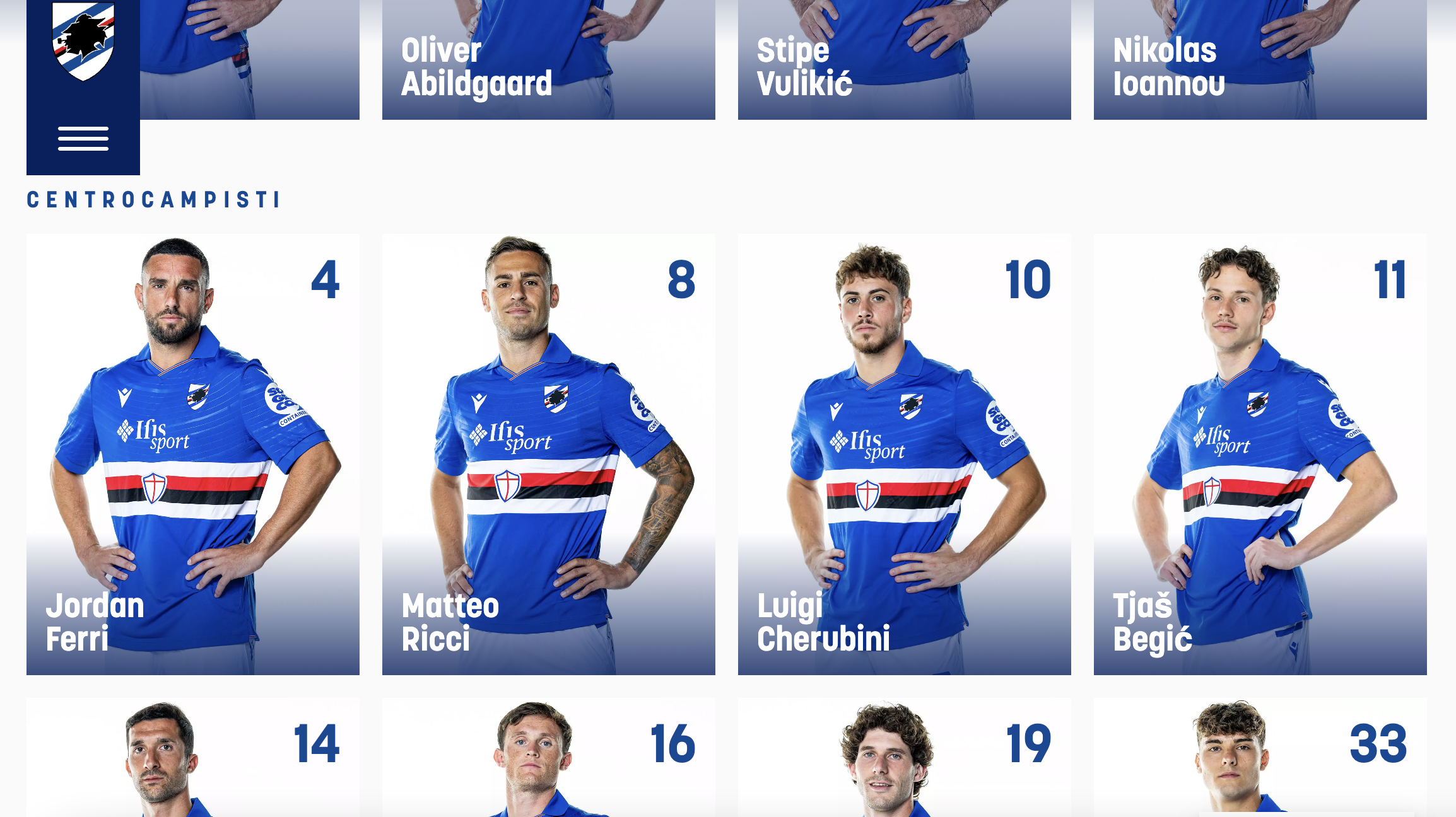 Un cambio di ruolo, come detto, messo anche a registro (vedi foto sotto) con l’aggiornamento sul sito ufficiale del club blucerchiato della sua posizione