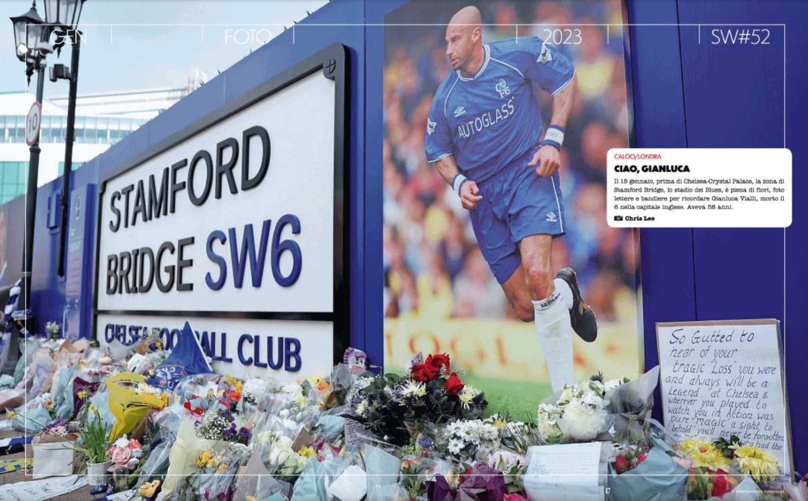 Sportweek ha pubblicato un numero fotografico con alcune delle immagini del 2023, tra queste c’è quella dei tifosi del Chelsea. I quali hanno dedicato a Luca lettere e fiori fuori da Stamford Bridge, dove era stata messa una sua foto. Vialli ha indossato la maglia dei blues di Londra in 87 occasioni (40 reti e 5 assist).