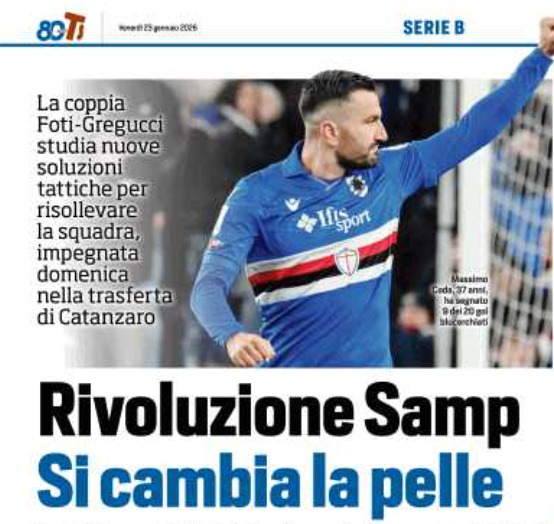 LEGGI ANCHE Verso Catanzaro-Sampdoria, La Repubblica: Massimo Coda in panchina, chi gioca con Matteo Brunori?
