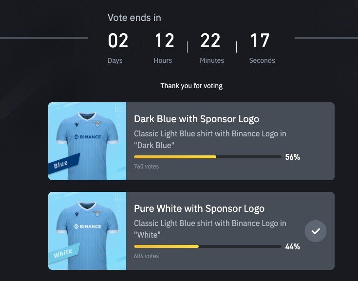 Da qualche settimana Socios non ha il monopolio dei fan token. Il portale di exchange di criptovalute Binance è infatti diventato sponsor della Lazio e ha lanciato il relativo fan token, lanciando i primi sondaggi (la scelta della maglia e la canzone da ascoltare durante il riscaldamento.