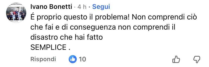 C’è chi replica, però, sottolineando fortemente il fatto che il vero problema, in fin dei conti, è proprio che Fredberg non sta capendo i malumori della sua piazza. Lo ha fatto presente Ivano Bonetti, leggenda della Sampdoria, che ha risposto con un commento via social a un post di ClubDoria46 proprio inerente alle dichiarazioni del CEO blucerchiato.