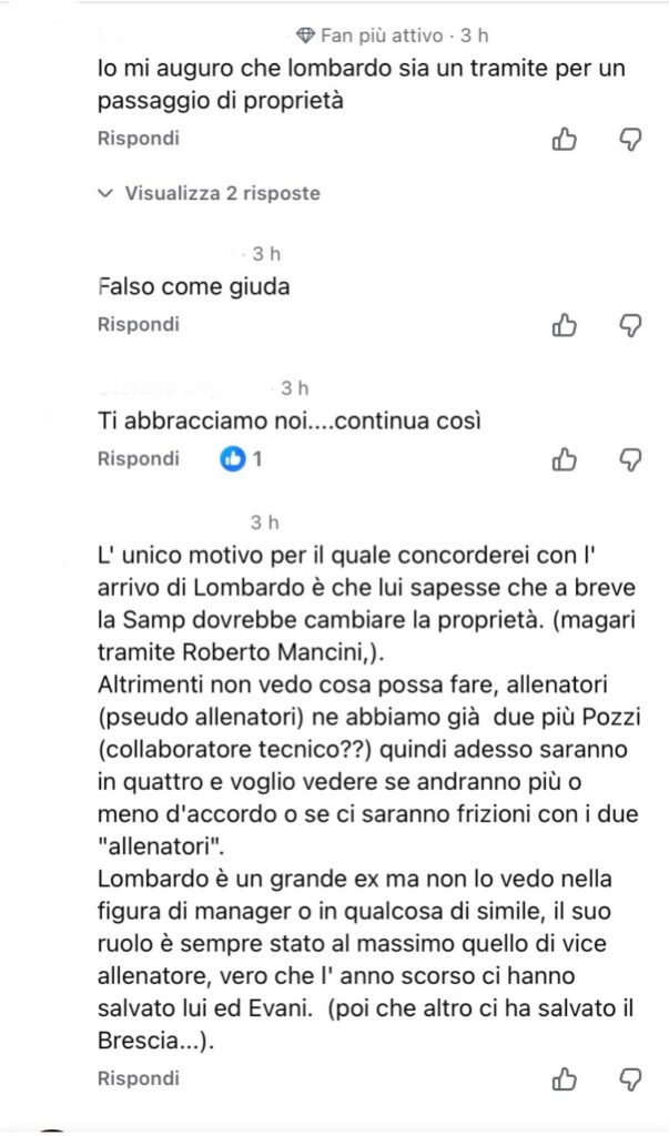 Insomma, molti tifosi hanno interpretato il ritorno come un segnale di qualcosa che sta cambiando a livello societario. Di una trattativa in atto tra l’attuale proprietà e alcuni sampdoriani, rappresentati anche da Lombardo.