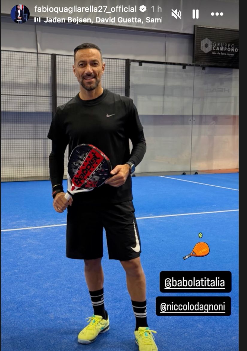 Fabio Quagliarella, sui social ha postato uno scatto in divisa da giocatore con tanto di racchetta piccola in mano, una dimostrazione di quanto ci tenga ad essere, in questo sport, quel fuoriclasse che era anche sul rettangolo verde.