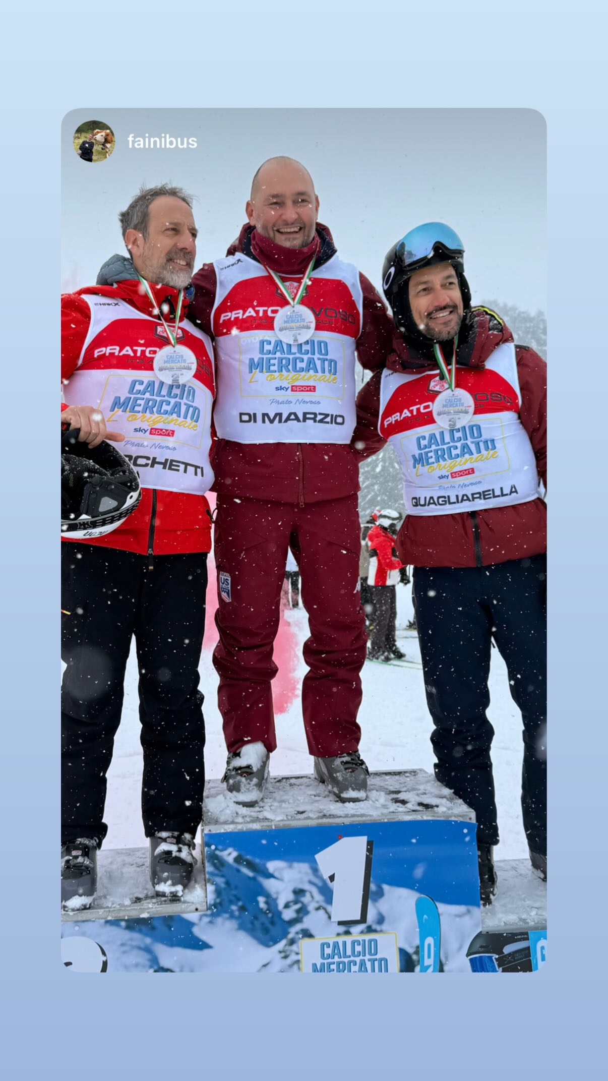 SOCIAL – Ex Sampdoria, Fabio Quagliarella sul podio della gara di sci di Sky Calciomercato. Il post