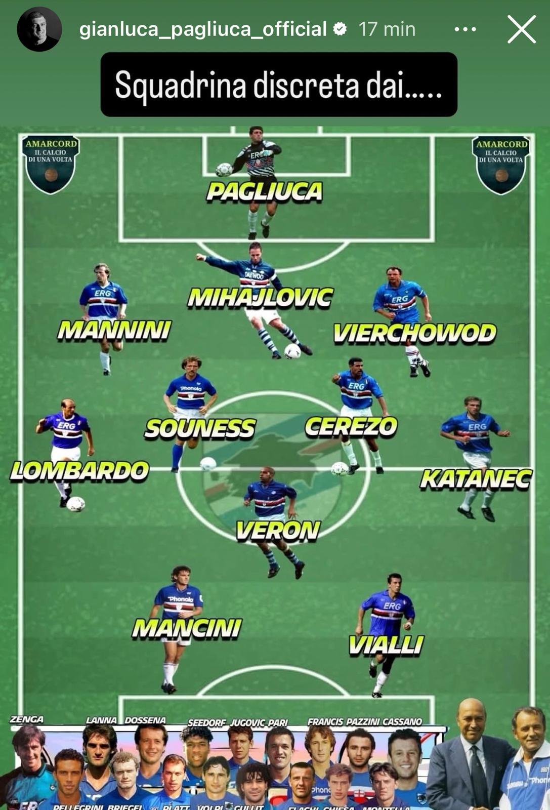 Una grande Sampdoria, quella che sui social ha schierato in campo l’ex portiere della Sampdoria, Gianluca Pagliuca. Una squadra che, se scendesse in campo stasera in Italia ed in Europa farebbe ancora la differenza.