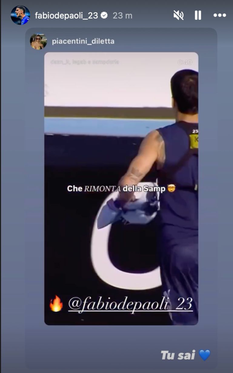 Ci sono immagini che raccontano più di mille parole, attimi che intrecciano calcio e sentimenti in un’unica emozione. È ciò che emerge dallo scatto condiviso da Diletta Piacentini, compagna di Fabio Depaoli, mentre celebra la rete del terzino blucerchiato.