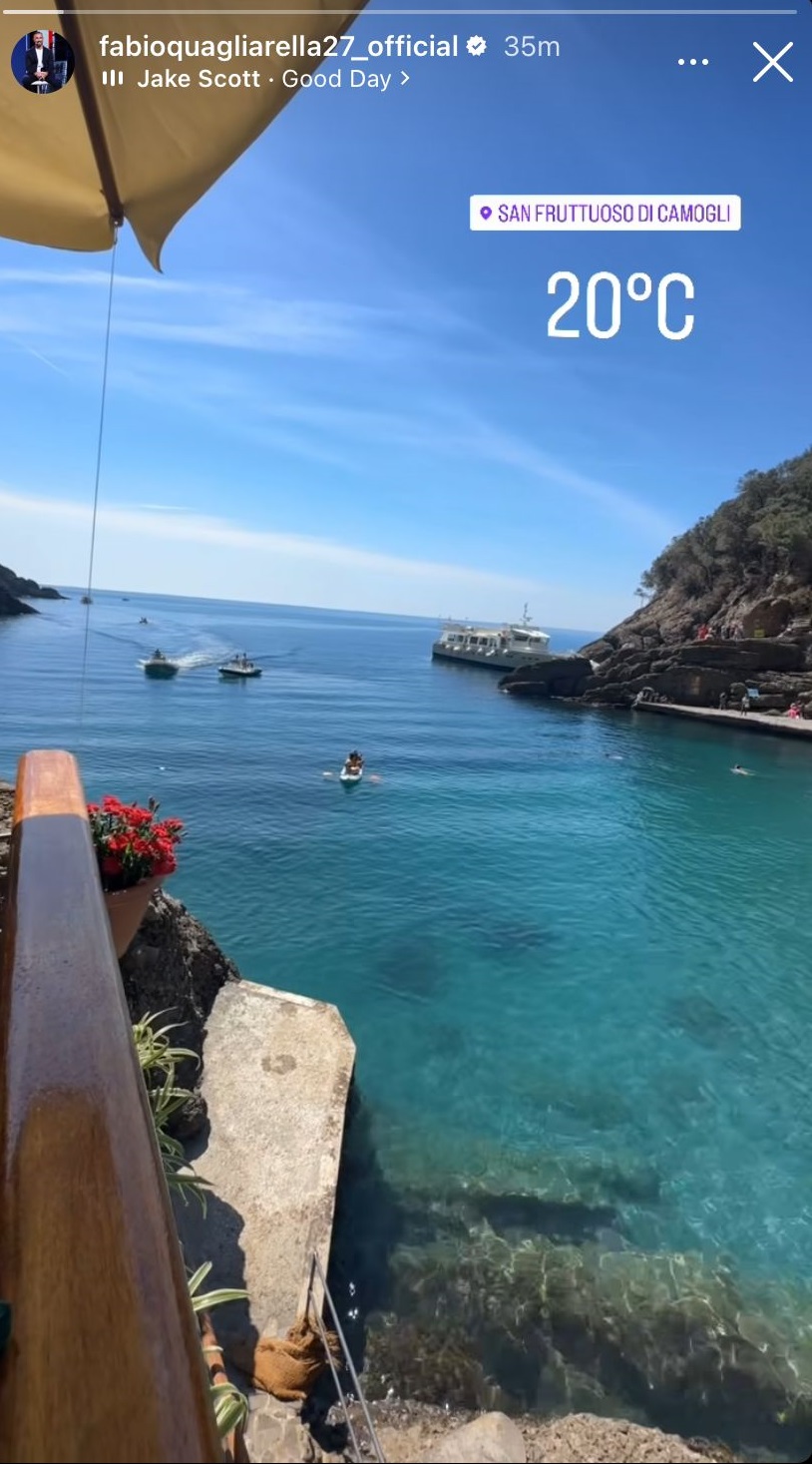 Infatti l’attuale opinionista di Sky Sport ha postato uno scatto sul suo account Instagram ha postato uno scatto che inquadrava il mare di San Fruttuoso di Camogli dove Quagliarella ha deciso di passare questo sabato di totale relax.