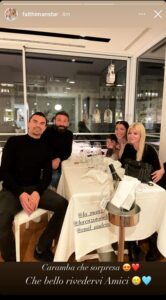 Oltre ai due giocatori c’erano infatti le loro compagne; è stata per l’appunto lady Audero a testimoniare il loro incontro, pubblicando una foto della serata nelle sue stories Instagram, con la didascalia: “Caramba che sorpresa! Che bello rivedervi amici“