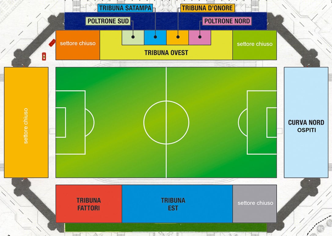 Settore Ospiti. I biglietti relativi al Settore Ospiti (capienza 1.500 posti) saranno in vendita dalle ore 16:00 di oggi, martedì 16 dicembre 2025, sino alle ore 19:00 di venerdì 19 dicembre 2025 presso i punti vendita del circuito Vivaticket di tutta Italia (elenco consultabile su: https://shop.vivaticket.com/it/ricercapv) e via web al prezzo di 22,00 euro (+ i diritti di prevendita). Su disposizione delle autorità preposte alla pubblica sicurezza, si informa che tutti i tifosi residenti nella provincia di Genova non potranno acquistare i biglietti per il settore Tribuna Est.