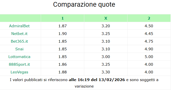 Il pareggio si attesta invece tra il 3.00 e il 3.20, mentre un eventuale colpo esterno del Padova viene valutato tra il 4.00 (LeoVegas e 888Sport) e il 5.00 (Lottomatica). Numeri che indicano un vantaggio per i padroni di casa, ma che non escludono una gara equilibrata, come spesso accade in un campionato dove ogni dettaglio può fare la differenza.
